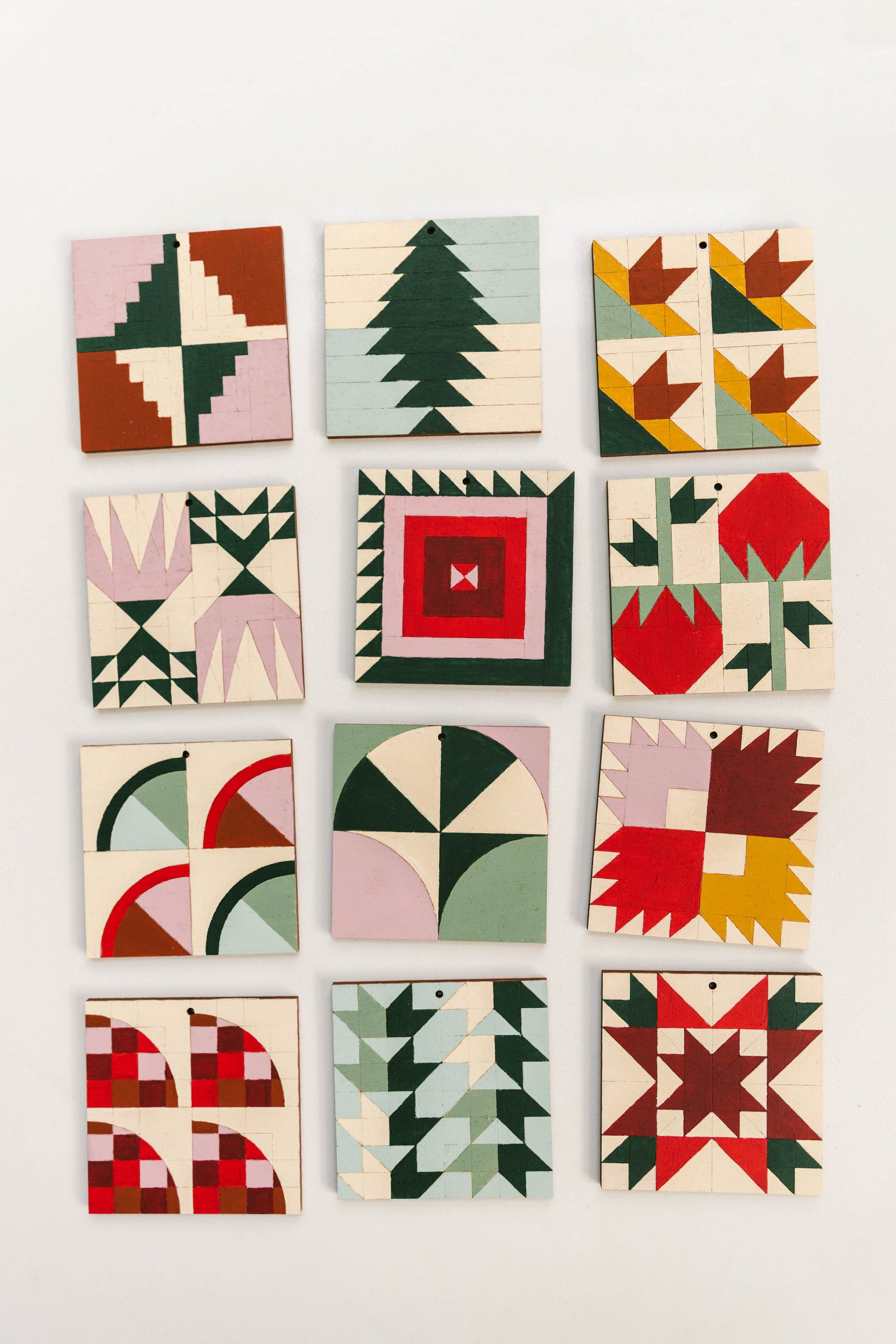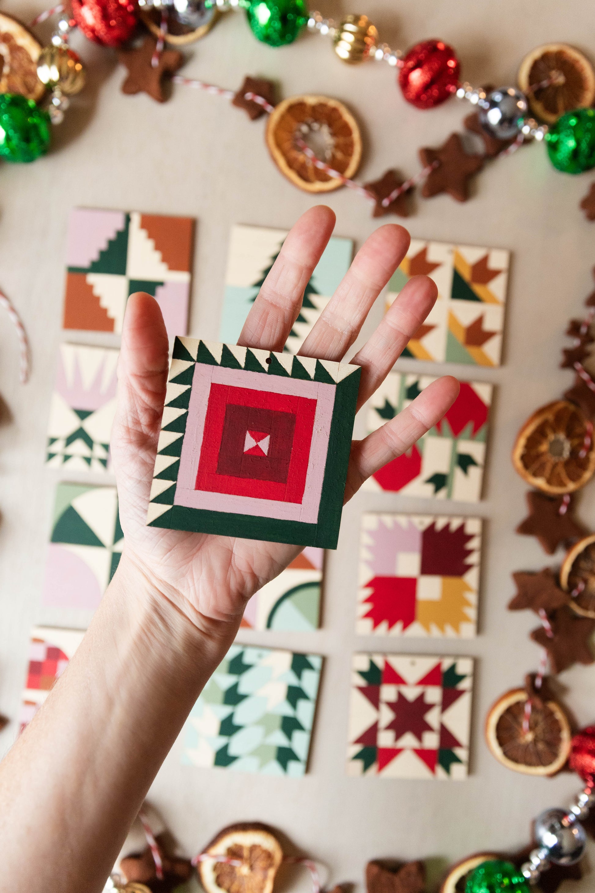 We are excited to bring you miniature wooden quilt blocks that you can paint! Each ornament is based on our 2025 Block of the Month, originally designed for subscribers of The Cutting Table. Visit suzyquilt.com/2025-ornament for a tutorial with painting tips.