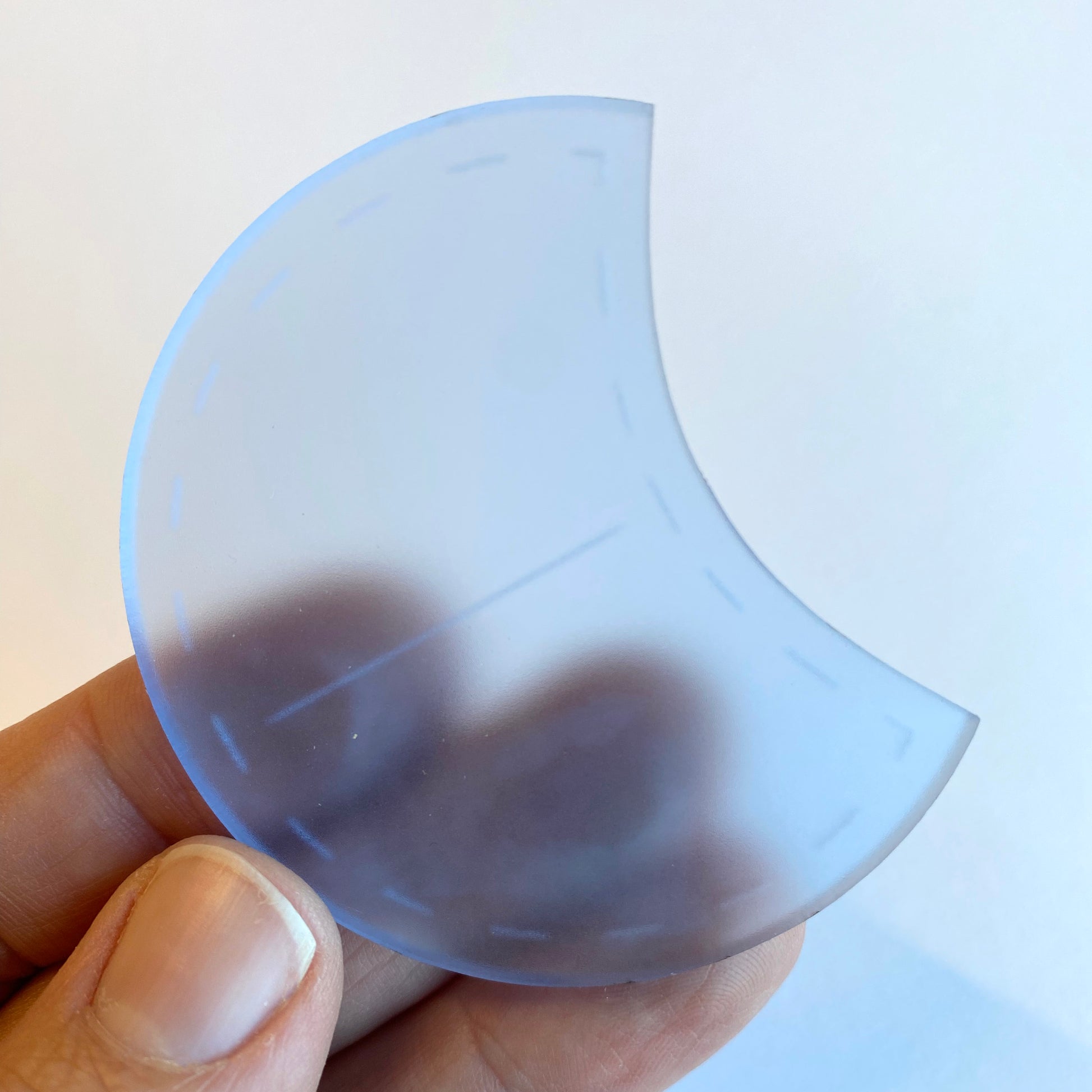 This template set includes a frosted blue acrylic moon template and a wooden jig, designed to assist with the precise placement of the moon shapes on the blocks. The set is packaged in a clear plastic sleeve for easy storage. The template includes a 1/8” needle-turned appliqué seam allowance. The digital pattern can be purchased directly from Laura here.