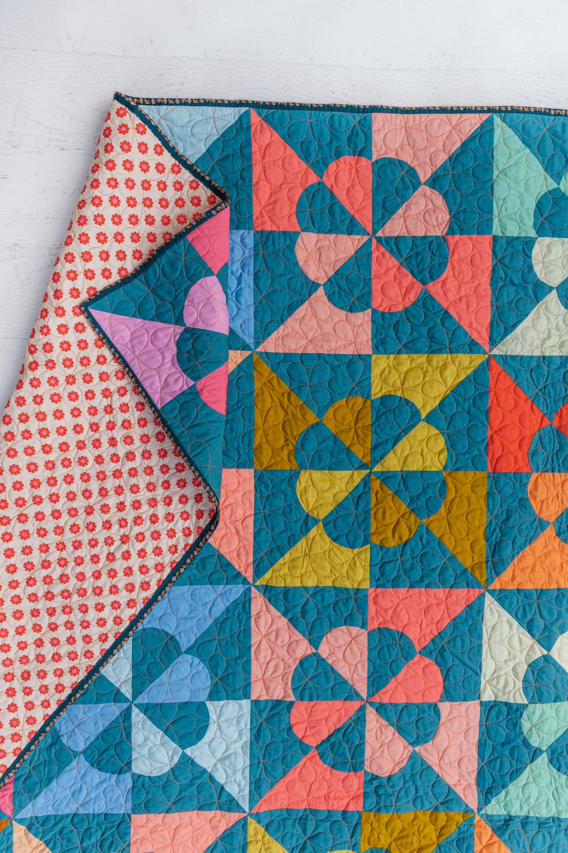 This is a simplified, modern spin on the traditional hearts and gizzards quilt design. The video tutorial included in the pattern makes these curved blocks approachable and easy! Noel looks great in holiday colors, but it's not just for the holidays. Check out this blog post to see how versatile Noel is and make this quilt a year-round staple. You'll never fear curves again!