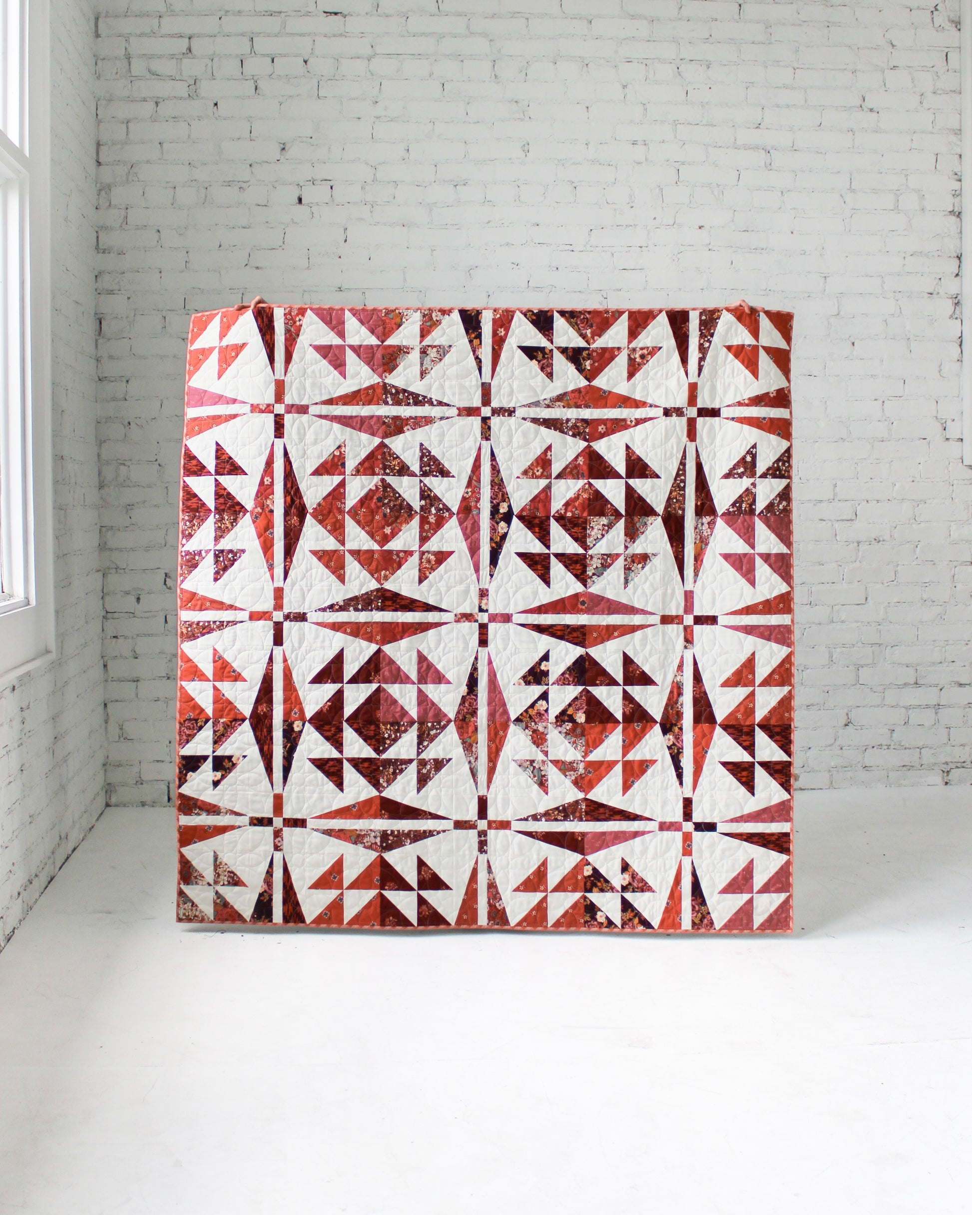 The pattern provides instructions for making a 63" x 63" throw quilt